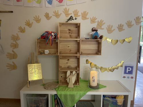 An unserem "Herzensort" können die Kinder individuelle mit religösem Material ihre Kreativität entfallten und biblische Geschichten nach spielen.